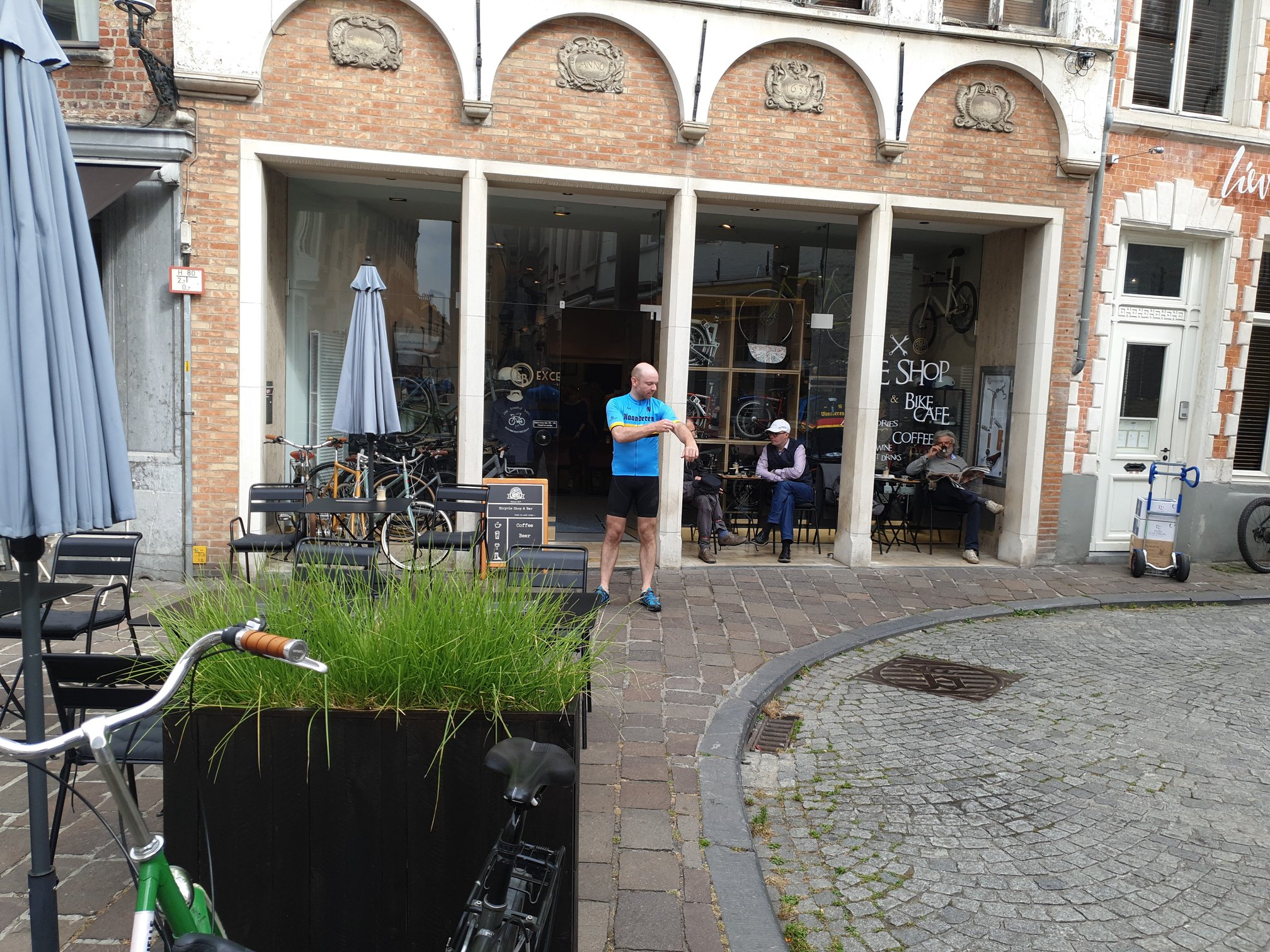 Heute morgen gestartet, wunderte Kay sich dann laufend warum Antwerpen noch nicht ausgeschildert sei. Zum Mittag gingen uns dann noch schließlich die Ausreden aus und wir lösten das Rätsel auf. Seine Freude war ihm schließlich ins Gesicht gezeichnet und wir erreichten, nach dem Übersetzen mit der Fähre, Brügge am frühen Abend. Als kleine Belohnung genossen wir das von Kai für diese Idee spendierte Kaltgetränk.