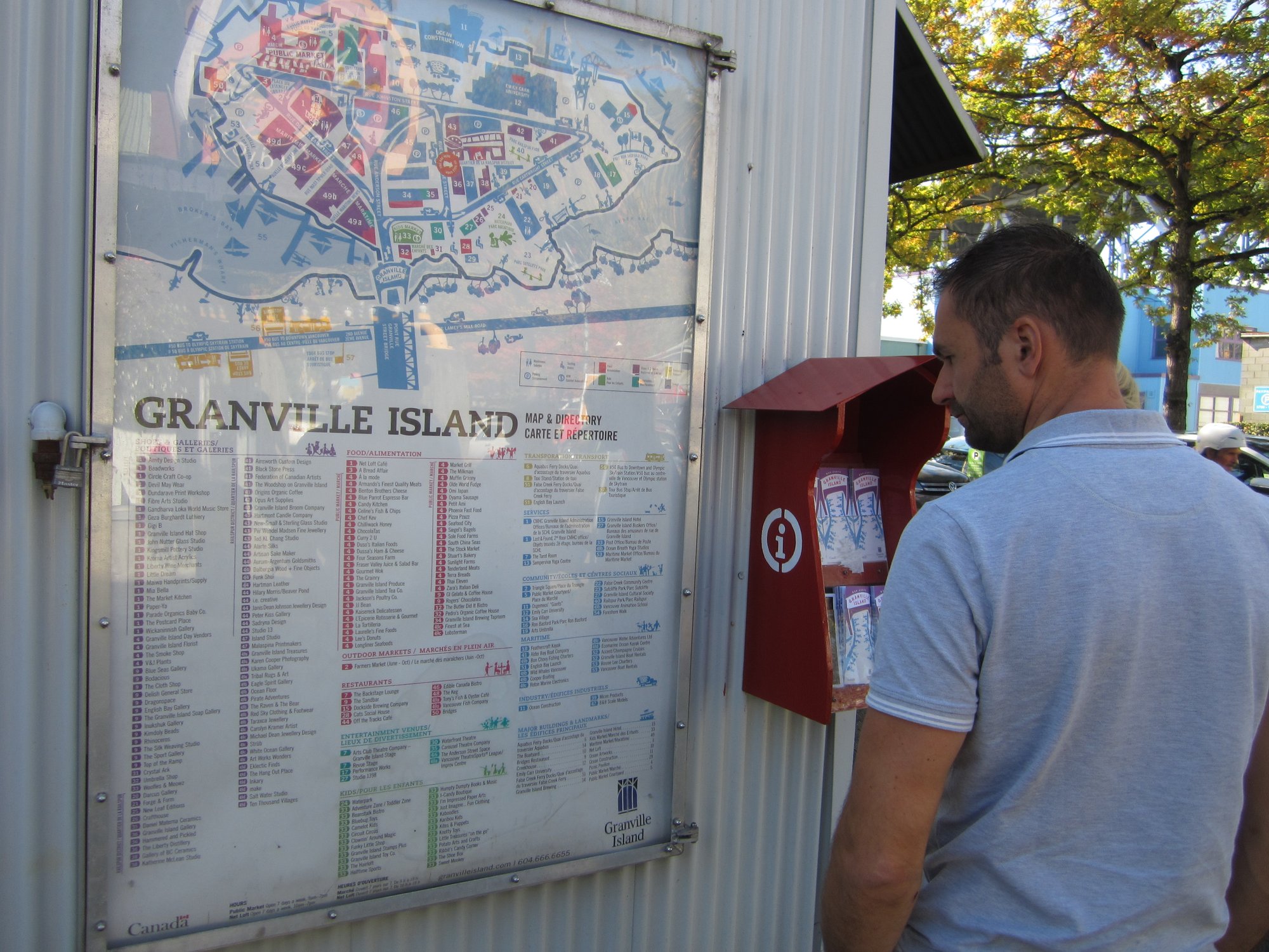 Nachdem wir einen weiteren Gast aus Deutschland vom Flughafen abholten, verspürten wir extremen Hunger und hofften diesen auf Granville Island stillen zu können. Dem war Gott sei Dank auch so und endlich kam ein wenig Flair auf und wir genossen die dortige Stimmung bei einem kleinen Picknick mit frischen Lebensmitteln vom Public Market.