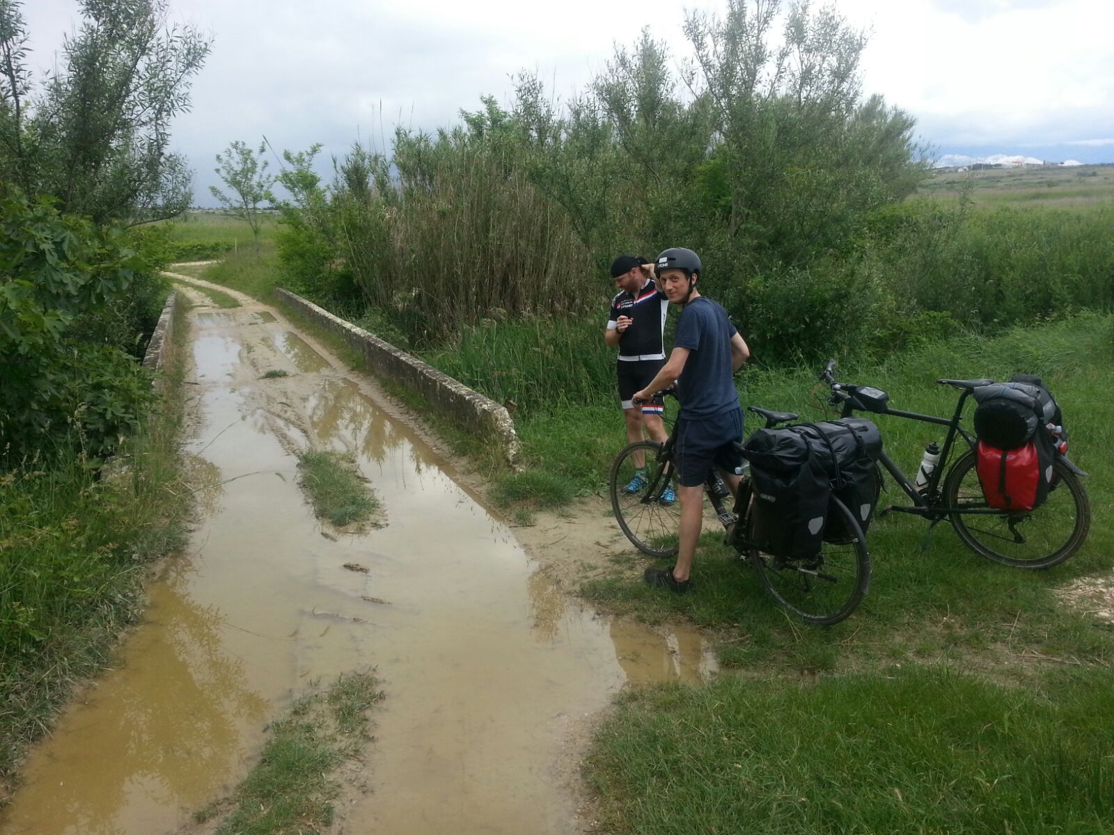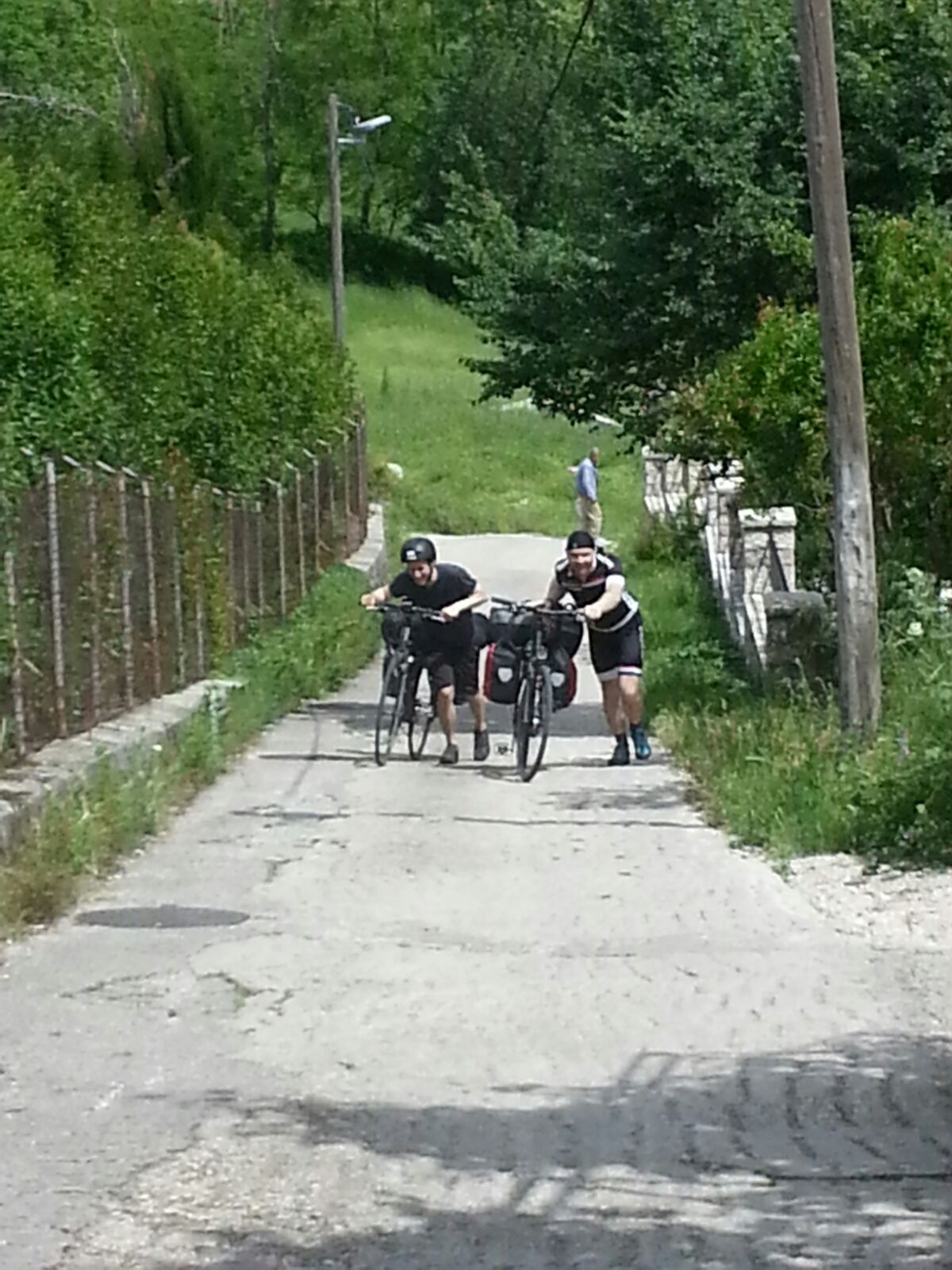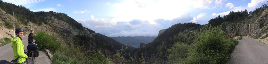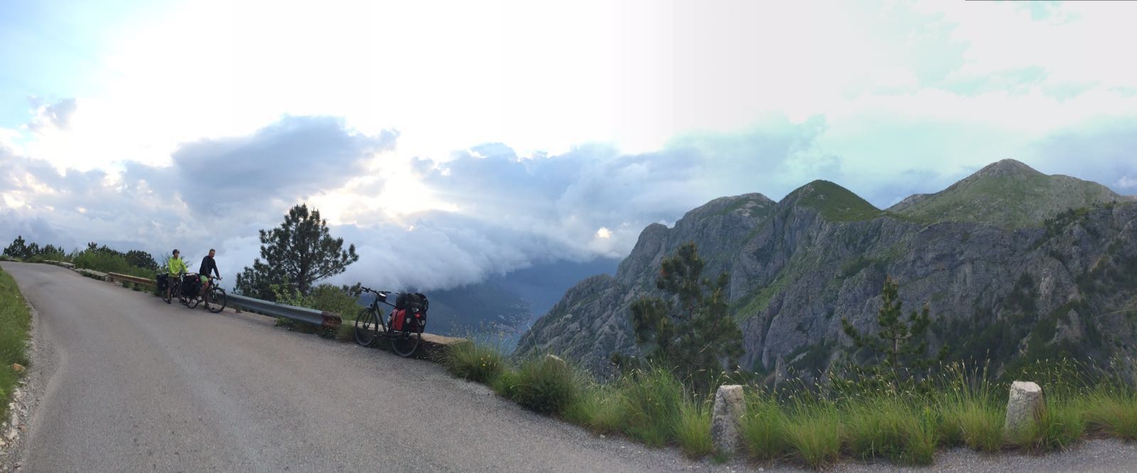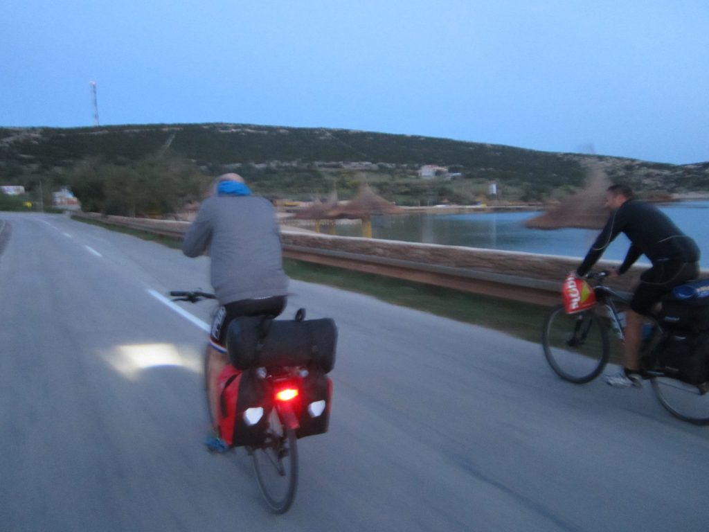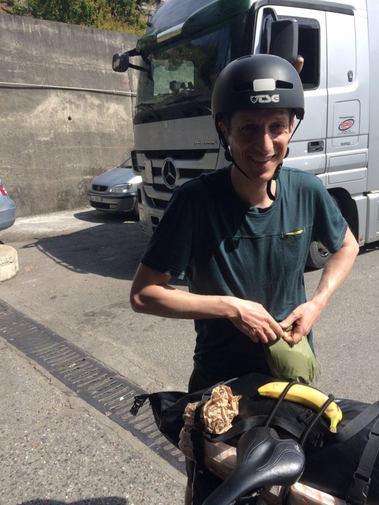 Um ca. 14:45 Uhr waren wir am Hauptbahnhof. Unsere Verbindung ging um 15:27 Uhr von Ljubljana über Villach – München – Hannover – Bremen, wo wir an nächsten Tag um 08:39 Uhr ankommen sollten. Beim ersten Blick auf die Anzeigetafel sahen wir für Villach nur eine Busverbindung. Am Schalter wurde uns die Verbindung mit dem Bus bestätigt. Es gab einen Schienenersatzverkehr bis Jesenice und anschließend sollte es weiter mit dem Zug nach Villach gehen (Eigentliche Umsteigezeit laut plan 7 min). Am Bussteig trafen wir die Vierergruppe aus Triest wieder, die 23% Steigung bergauf fuhren, wo es für uns bergab ging. Die Gruppe wurde schon von dem zuständigen slowenischen Einweiser instruiert und war tiefenentspannt. Insgesamt kamen vor Abfahrt 8 Räder mit Gepäck zusammen. Der slowenische Einweise erzählte uns dann, dass unsere Fahrräder mit Gepäck in einen Kleinbus geladen werden und wir mit einem separaten Bus befördert werden. Jetzt kam ein wenig Chaos auf, da auch nicht ganz klar war in welchen Bus wir steigen sollten. Doch das klärte sich zum Glück kurz vor Abfahrt und es ging mit etwas Verspätung los.