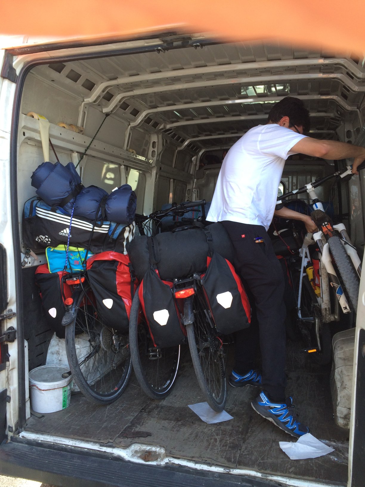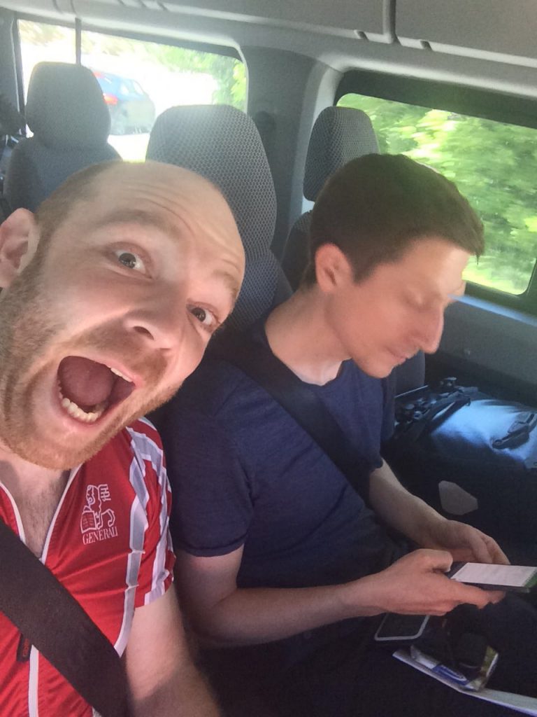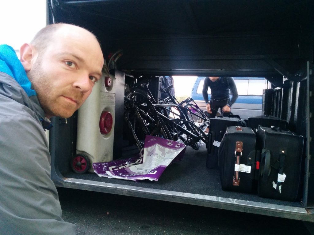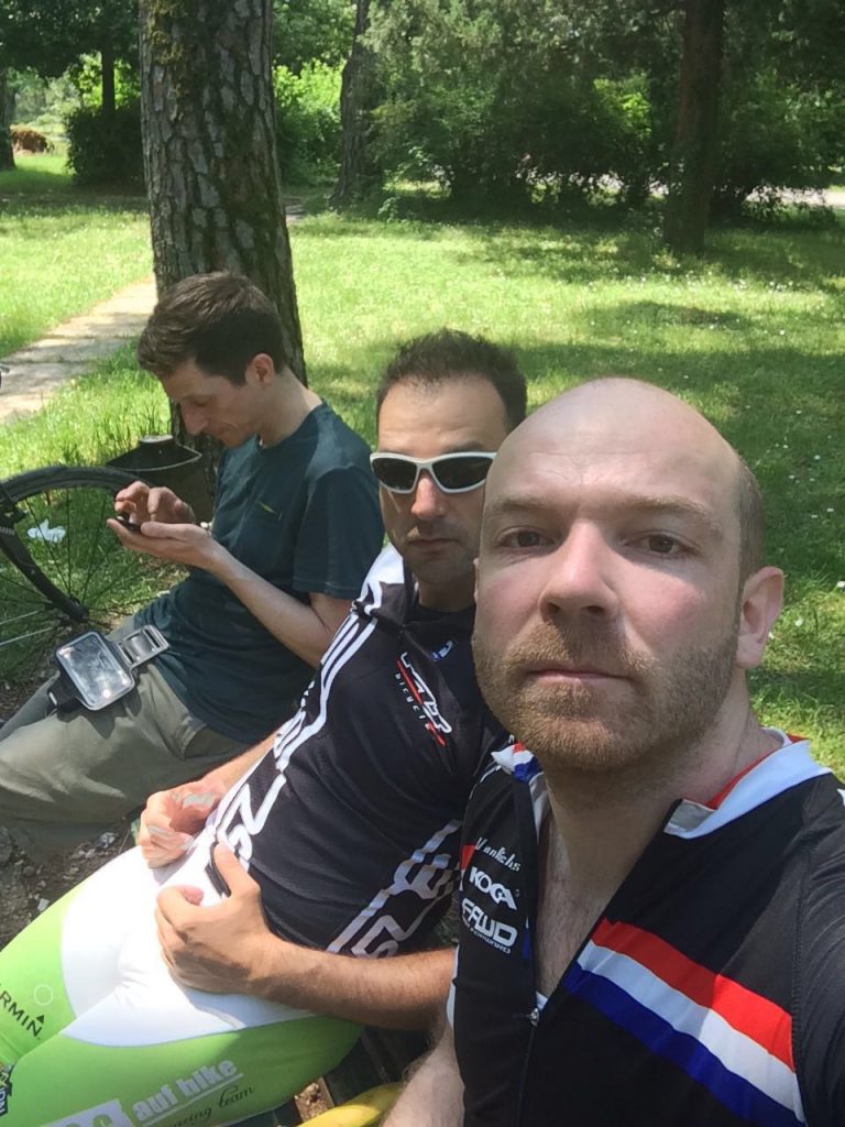 Der Passagierbus voran und der Gepäckbus hinterher. Nach ein paar Staus und ausfallenden Bemerkungen einer verhaltens auffälligen Person, nahmen wir wahr, dass uns der Gepäckbus nicht mehr folgte. Wir schmunzelten etwas und hofften, dass wir unsere Räder samt Gepäck später am Zielbahnhof vorfinden würden. Eine Haltestelle bevor wir wieder auf den Zug umsteigen sollten, gab es erneut etwas Chaos, da der Busfahrer etwas von „Jesenice aussteigen“ murmelt. Daraufhin stiegen so gut wie die Hälfte der Personen aus. Vor dem Bus tauchte wie aus heiterem Himmel der Einweiser aus Ljubljana auf, wo wir uns fragen, wo dieser aus einmal her kam. Er schickte uns glatt wieder zurück in den Bus und es gab einen kleinen Disput mit dem Busfahrer. Weiter ging die wilde Fahrt… In Jesenice angekommen war von dem Gepäckbus weit und breit nichts zusehen. Die Busfahrer beruhigten uns etwas und ca. 5 min. später kam dann auch der der Bus. Ungewöhnlich war nur, dass die Reihenfolge der Räder komplett verändert wurde. Es fehlte aber zum Glück nichts.