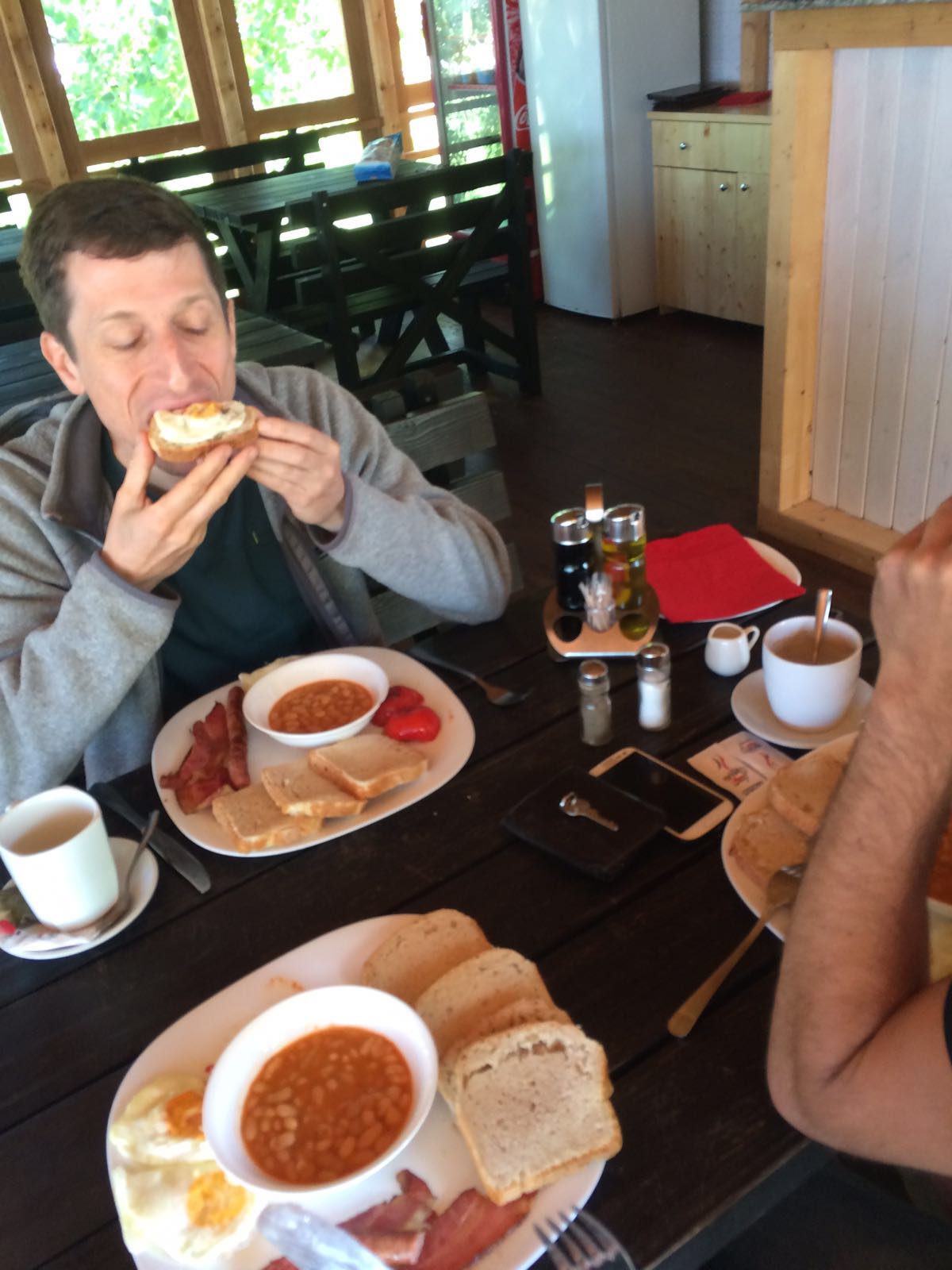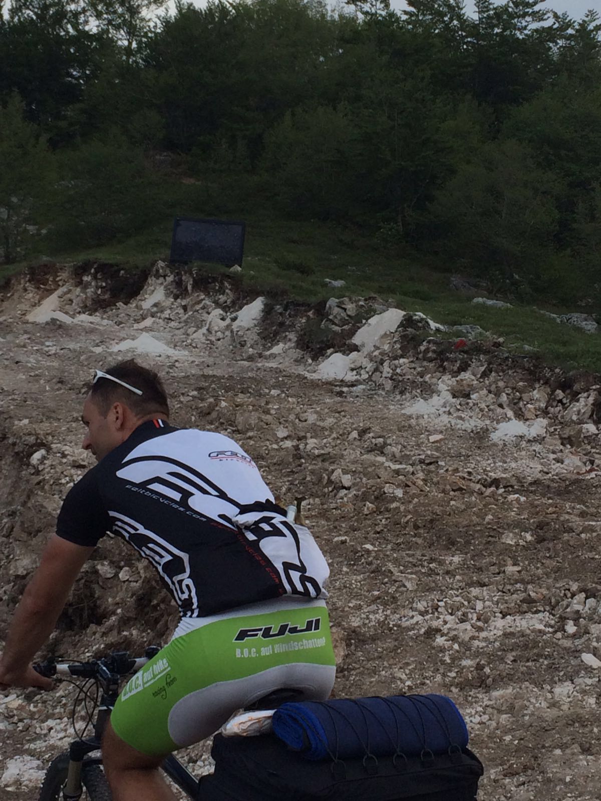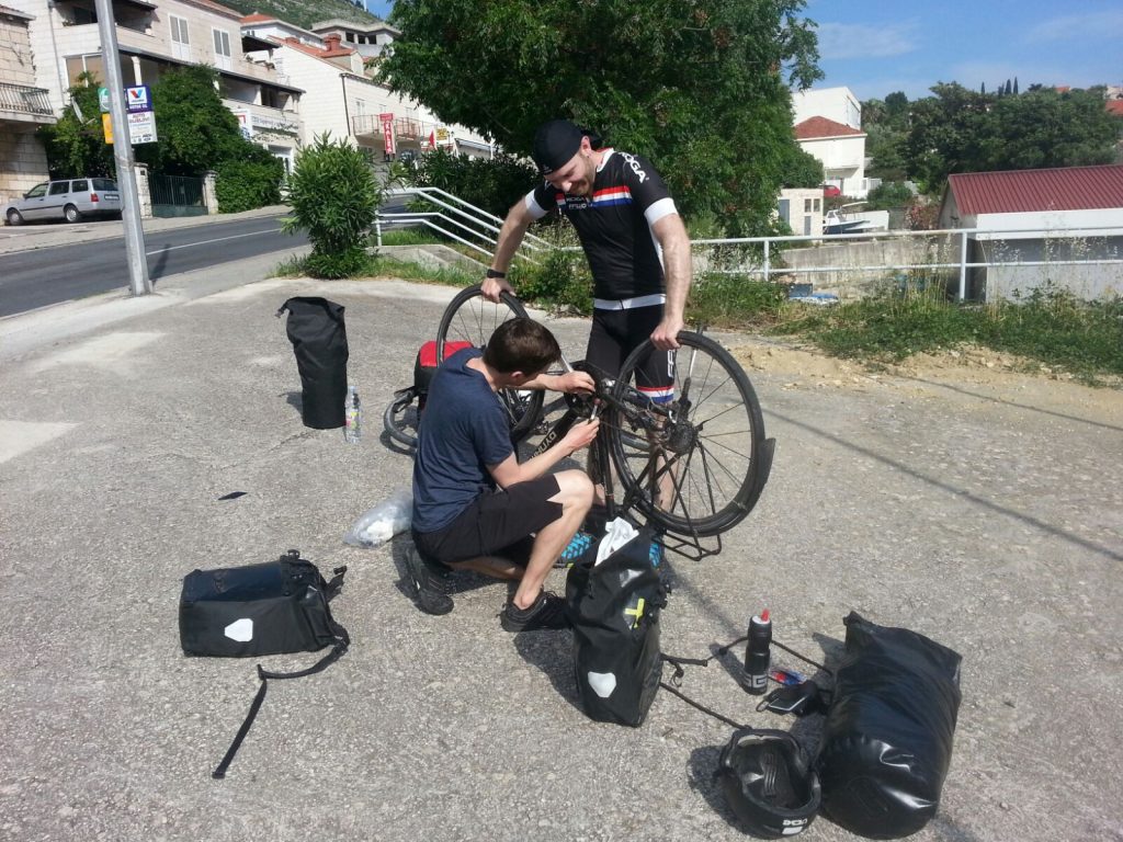 Der Passagierbus voran und der Gepäckbus hinterher. Nach ein paar Staus und ausfallenden Bemerkungen einer verhaltens auffälligen Person, nahmen wir wahr, dass uns der Gepäckbus nicht mehr folgte. Wir schmunzelten etwas und hofften, dass wir unsere Räder samt Gepäck später am Zielbahnhof vorfinden würden. Eine Haltestelle bevor wir wieder auf den Zug umsteigen sollten, gab es erneut etwas Chaos, da der Busfahrer etwas von „Jesenice aussteigen“ murmelt. Daraufhin stiegen so gut wie die Hälfte der Personen aus. Vor dem Bus tauchte wie aus heiterem Himmel der Einweiser aus Ljubljana auf, wo wir uns fragen, wo dieser aus einmal her kam. Er schickte uns glatt wieder zurück in den Bus und es gab einen kleinen Disput mit dem Busfahrer. Weiter ging die wilde Fahrt… In Jesenice angekommen war von dem Gepäckbus weit und breit nichts zusehen. Die Busfahrer beruhigten uns etwas und ca. 5 min. später kam dann auch der der Bus. Ungewöhnlich war nur, dass die Reihenfolge der Räder komplett verändert wurde. Es fehlte aber zum Glück nichts.