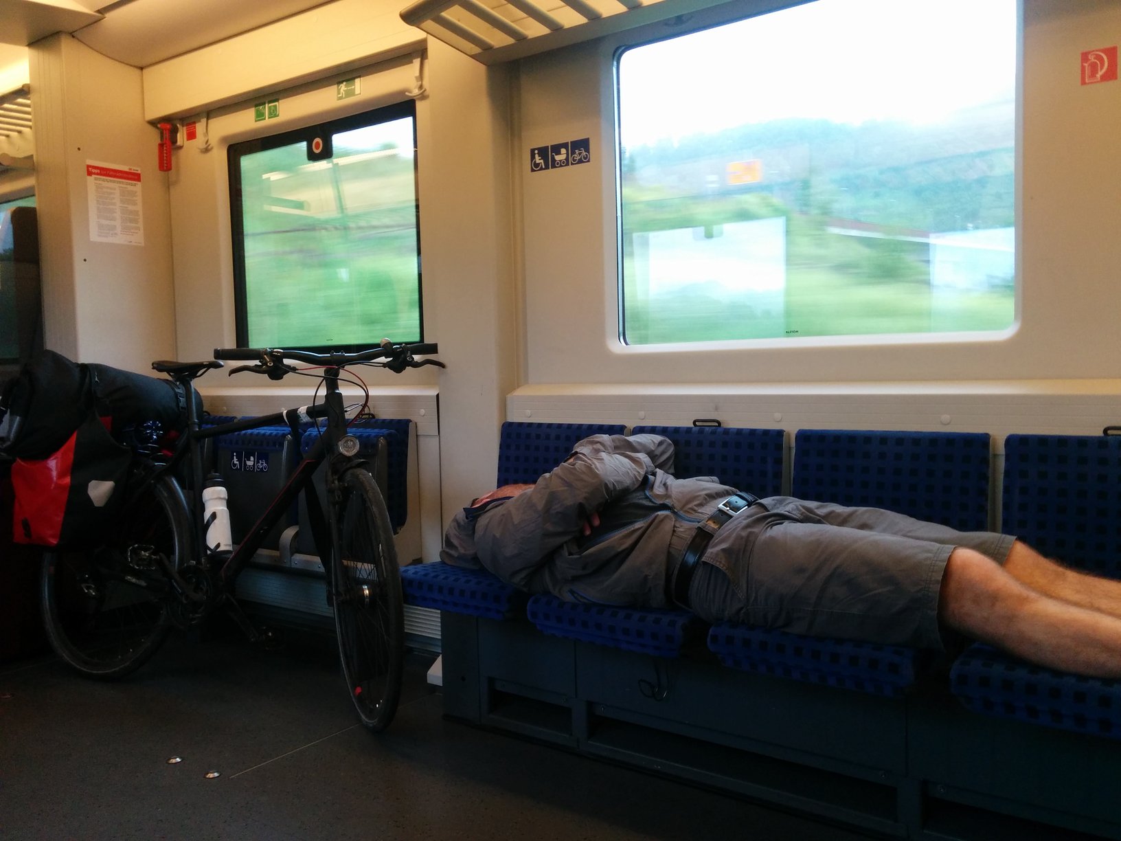 Etwas müde kamen wir an unserem vermeintlich letzten Umstieg vor unserm Ziel an. Mit der letzten Kraft beförderten wir unsere Fahrräder in das freie Fahrradabteil. FREI! ALLE PLÄTZE!