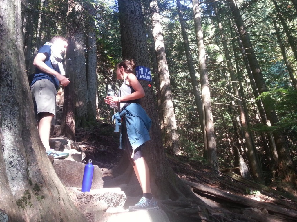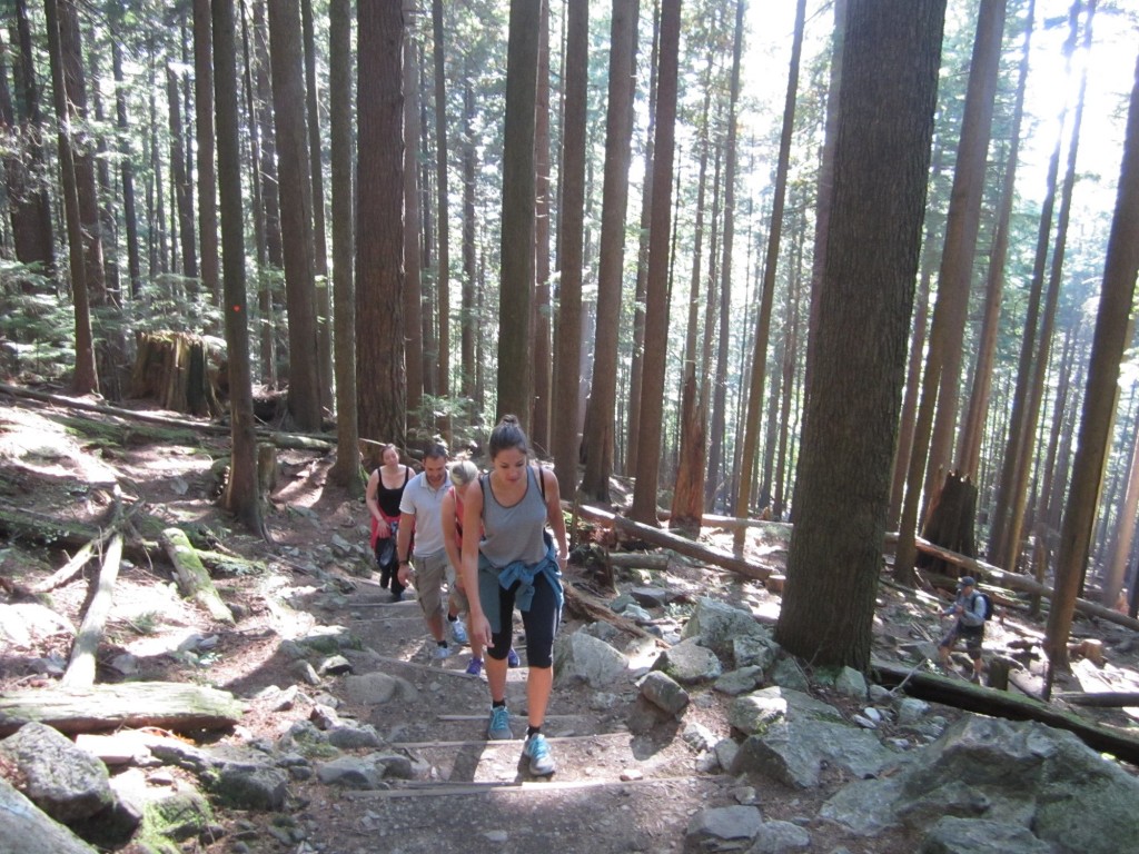 Nachdem es für Kay bereits mit dem Wasserflugzeug hoch hinaus ging, folgte dann der Aufstieg des Grouse Mountain für alle und zwar aus eigener Kraft. Niemand (außer Jenny) wusste so recht was uns erwartet und das war auch gut so.