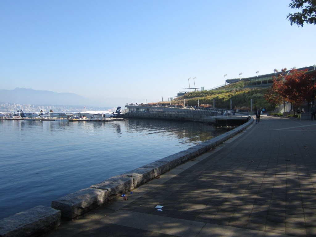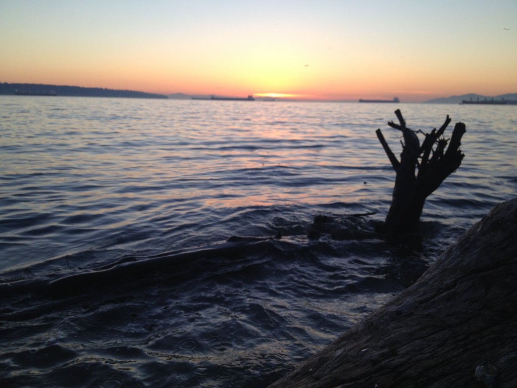 Der Weg ist das Ziel und als wir dann endlich das Tageslicht gefunden hatten, buchte Kay für den morgigen Tag seinen Flug. Währenddessen genossen wir die Abendstimmung und danach ging es dann ab zur English Bay. Dort wollten wir uns den Sonnenuntergang ansehen… leider verpassten wir diesen um wenige Minuten. War trotzdem toll. Und so langsam verstand man weshalb diese Stadt so lebenswert ist. Es muss wohl an den Farben liegen. Blau und Grün sind ja Balsam für die Seele.