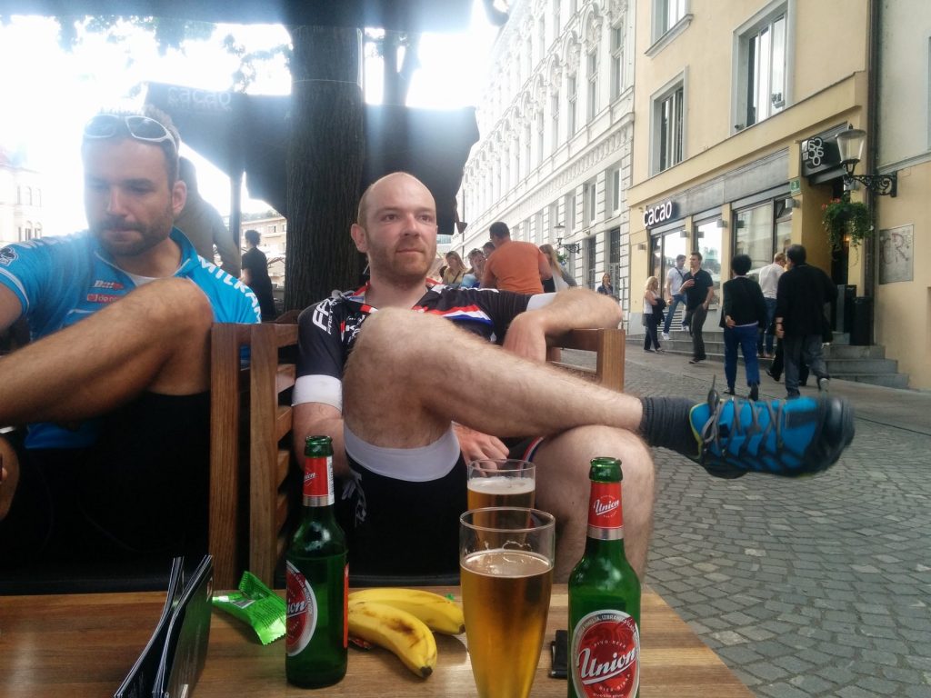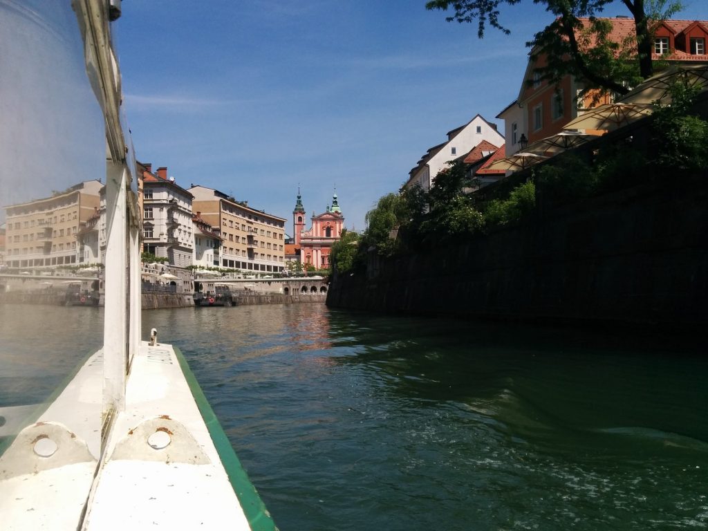 Zur Feier des Tages gab es bei Ankunft im Stadtzentrum von Ljubljana ein Union an der Ljubljanica. 🙂