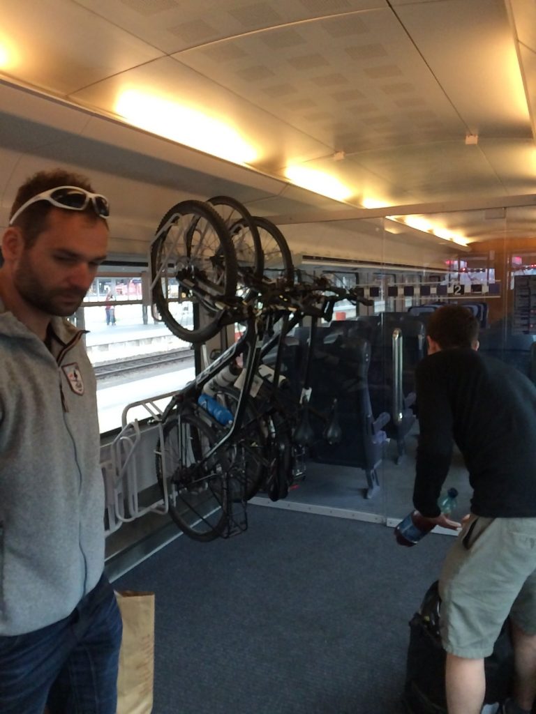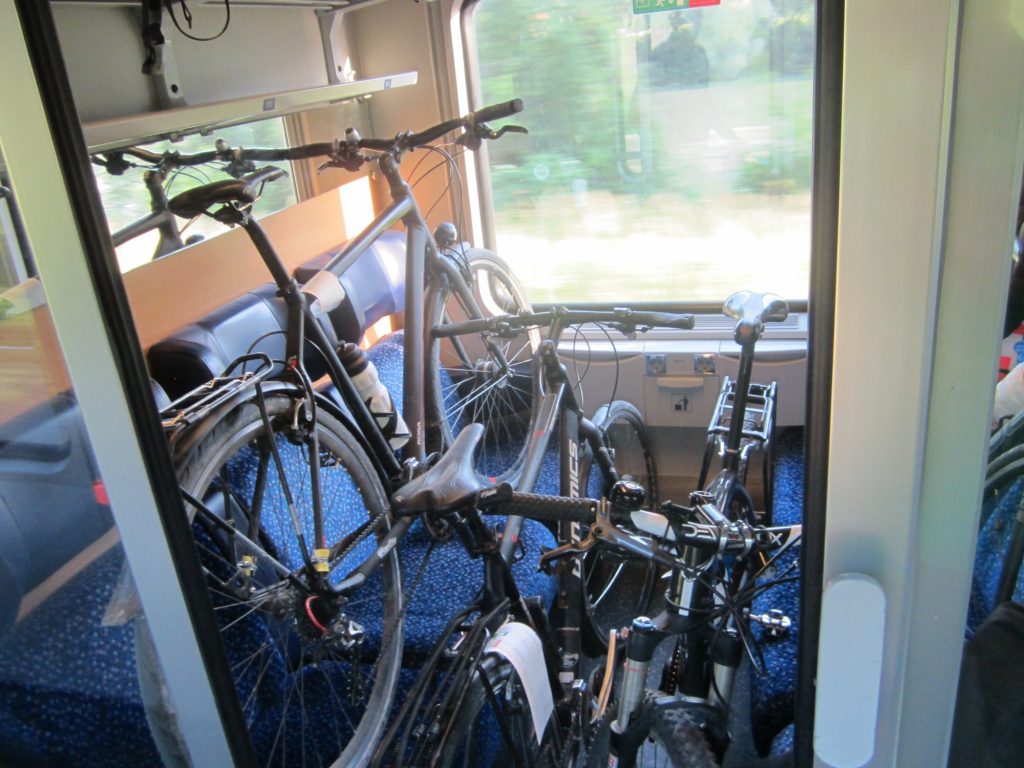 Etwas müde kamen wir an unserem vermeintlich letzten Umstieg vor unserm Ziel an. Mit der letzten Kraft beförderten wir unsere Fahrräder in das freie Fahrradabteil. FREI! ALLE PLÄTZE!